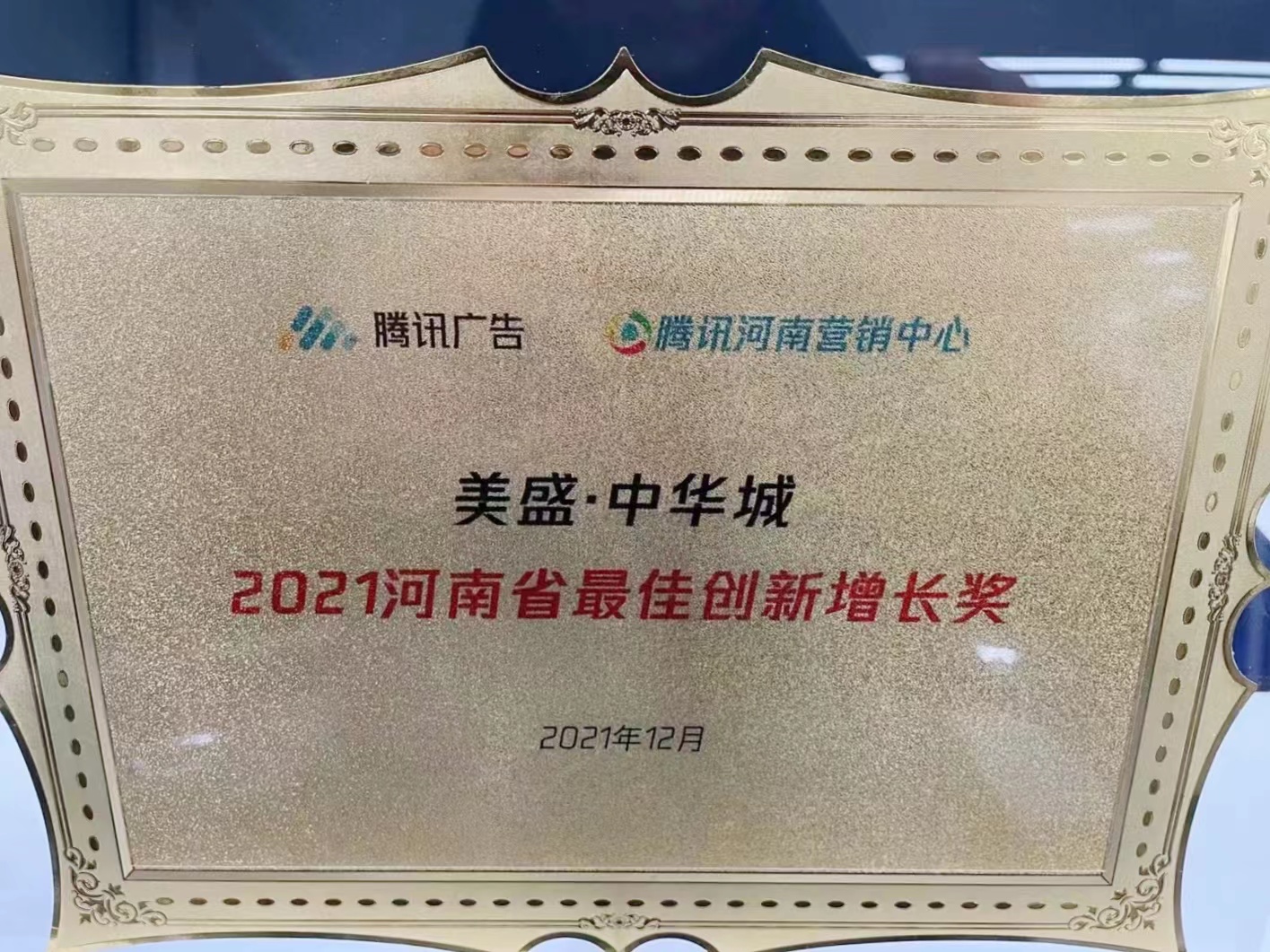 2021河南省最佳創新增長獎 美盛中華城 -