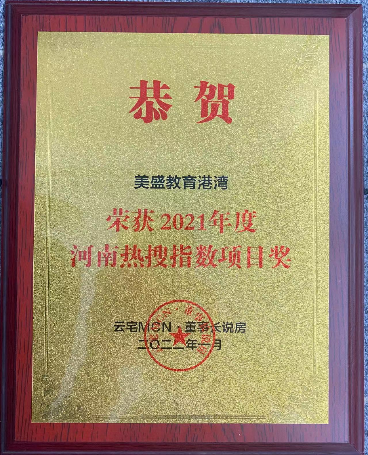 榮獲2021年度河南熱搜指數項目獎 美盛·教育港灣 -