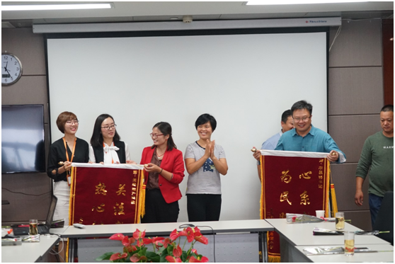 會議的最后,楊校長代表唐學元希望小學為美盛地產集團送上了一面錦旗,感謝美盛對學校的愛心付出