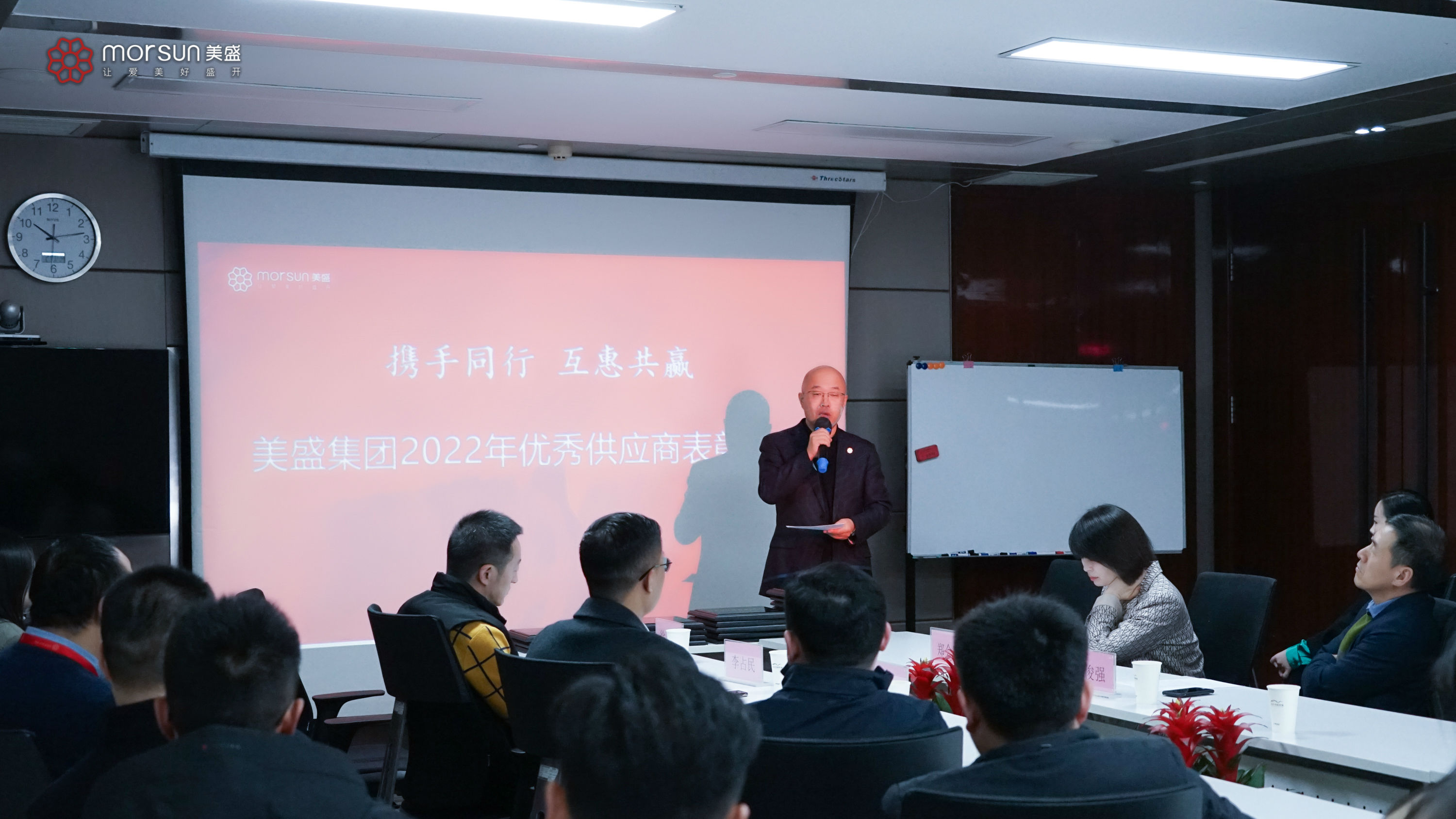 2023年2月17日,美盛集團2022年優(yōu)秀供應(yīng)商表彰大會在美盛中心隆重舉行,美盛集團總裁徐邁、副總裁李占民、助理總裁兼營銷管理中心總經(jīng)理鄭會莉、合約管理部總經(jīng)理趙俊強、工程管理部總經(jīng)理肖強及各優(yōu)秀供應(yīng)商代表出席。
