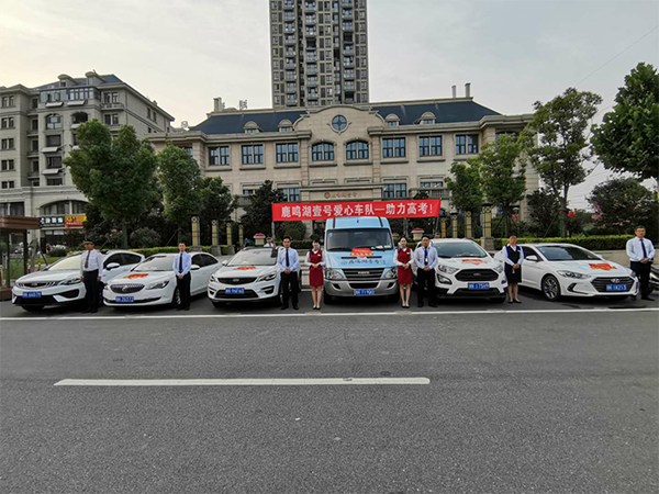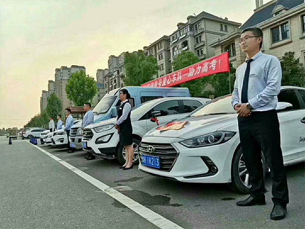 高考前一天服務中心組織員工愛心車隊,護送考生加油助威。