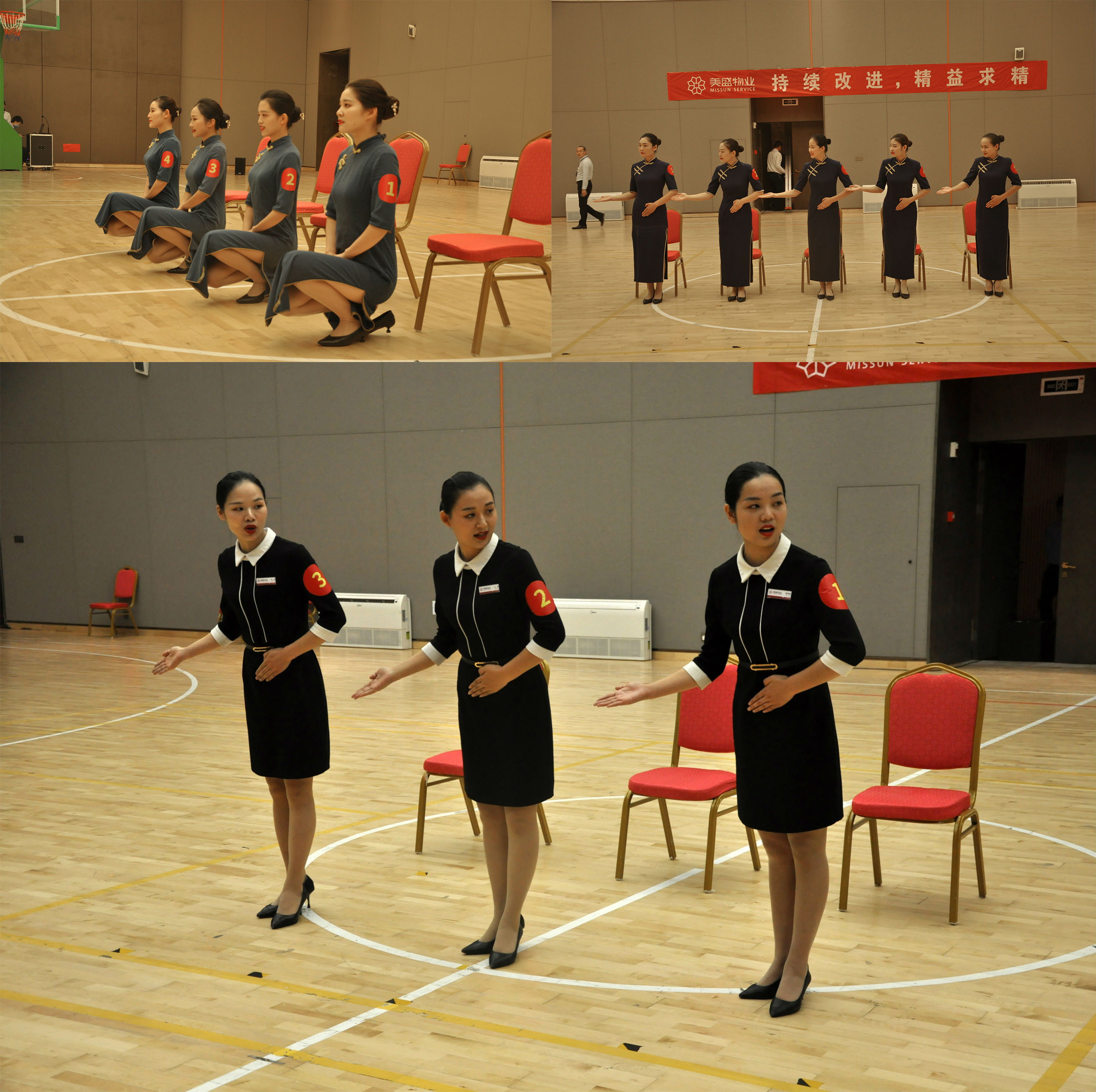 良好的形象塑造,是為更好的日常物業客戶服務工作。5個項目代表隊通過走、站、坐、蹲、指引等動作展示團隊風采。