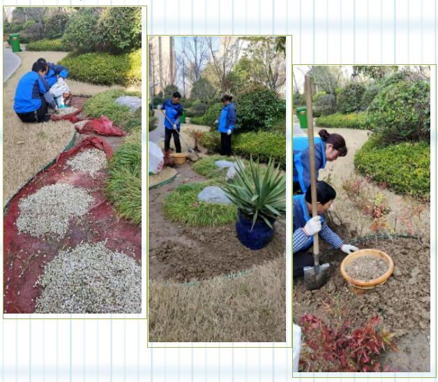 一次園區(qū)巡查,吳大姐注意到小區(qū)2號(hào)樓北邊綠化帶的石子,因經(jīng)常被孩子們當(dāng)做玩具亂扔,有點(diǎn)變色,影響園區(qū)的美觀。于是帶領(lǐng)員工將變色的石子清除,秉持環(huán)保和節(jié)約理念,用平時(shí)收集的花盆栽種了一些花卉,不僅使園區(qū)綠化帶煥然一新,同時(shí)也將資源利用最大化。業(yè)主每次走到這里,都會(huì)頓足觀賞半天,贊不絕口。