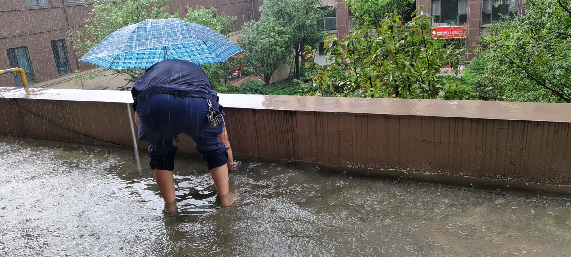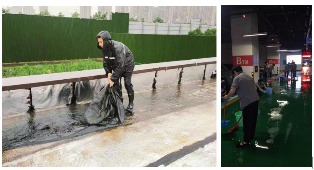 日常進入雨季,前期項目會提前做好準備工作,提前檢查疏通地面和屋面排水溝,清理化糞池和污水井、檢查排水主管與市政管網接口,保證暢通;檢查排污水泵,保證重要位置(發電機房、水泵房、配電房)等位置的污水泵能自主運行;檢查外墻立面,通知住戶,整理陽臺、屋頂花園、清理高空擱置物、雨棚。項目重點位置和設施設備,針對設備機房及低于小區水平面標高的設施設備進行重點監控(地下室、電梯井);辦公電腦和監控主機、道閘設備等公共用電設備。