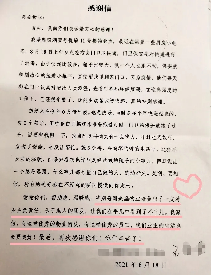 “一封家書”——來自美盛物業的深情告白