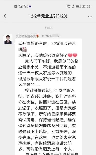 家人們好,我是你們的物業管家小美,不知道暴雨來臨的這一天一夜大家是怎么度過的,但是很想跟大家說一下我們是怎么度過的……