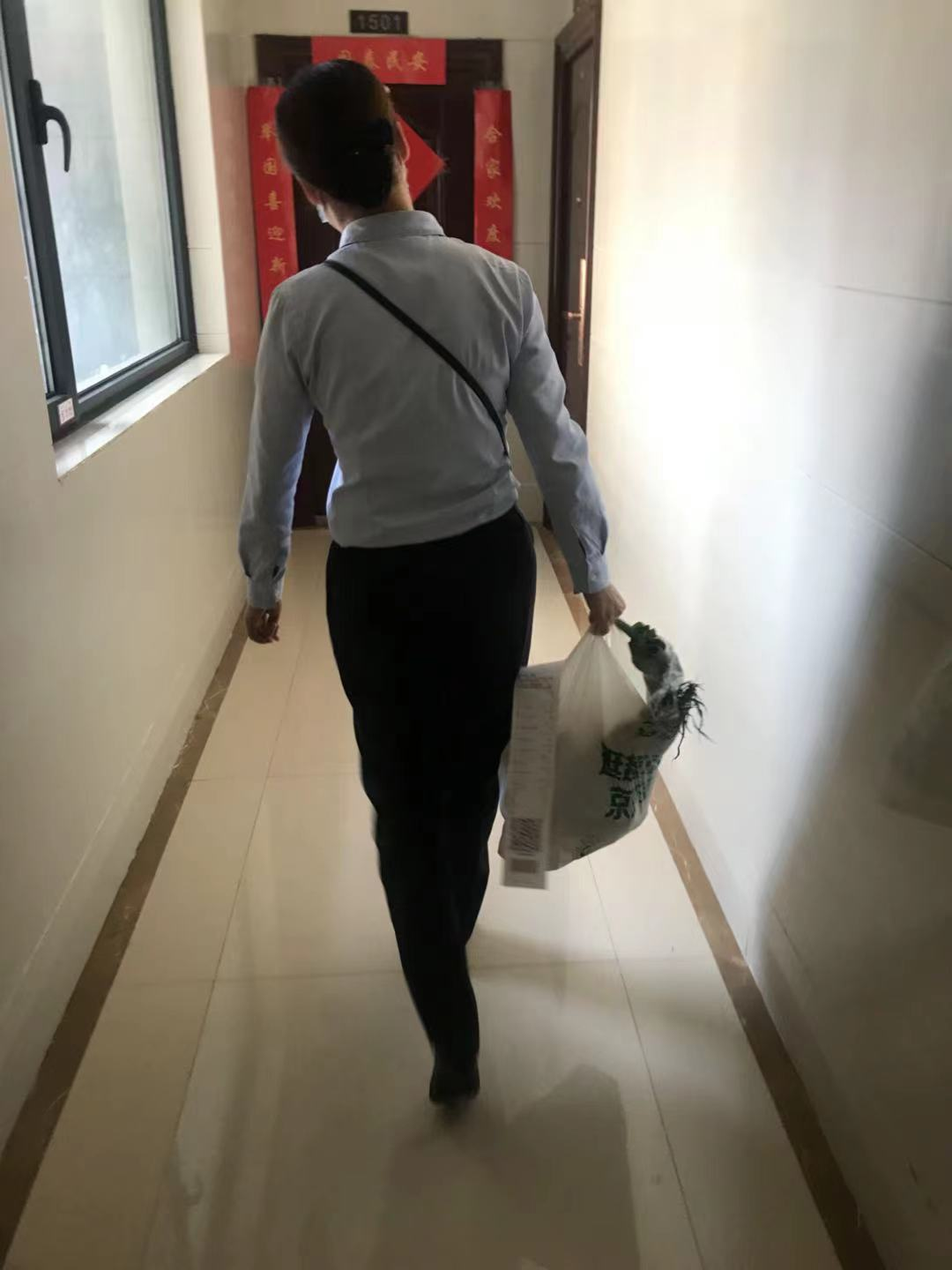 一個月前,徐莊北苑一租戶電話至服務中心告知自己到過中高風險區,管家李森莉第一時間聯系村委相關人員一同將此事報備至轄區街道辦事處。上級部門了解具體情況后,決定對此戶進行居家隔離。大家懸著的心終于可以稍稍平靜一下。但是隔離戶的生活品質怎么保障呢?誰去送隔離戶需要的生活物資呢?一時眾說紛紜,無人回應,各有各的考慮在這個時候都可以理解。而李森莉,默默的聯系業戶,安撫業戶的情緒,了解業戶生活所需。