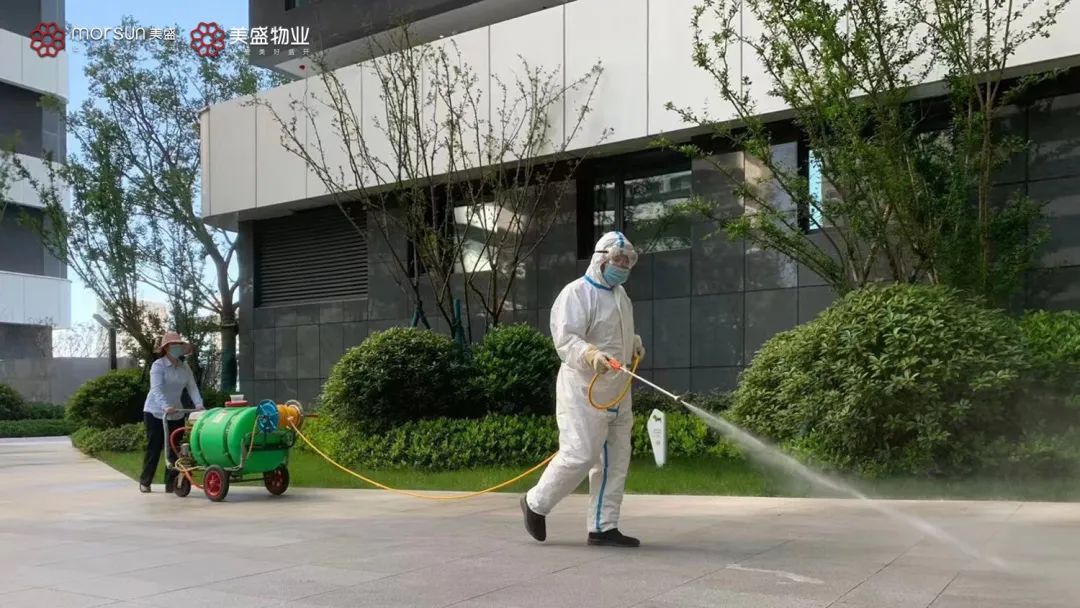 在美盛集團的各個項目里,隨處可見身著防護服的消殺人員。此次疫情,美盛物業(yè)加強了小區(qū)重點部位的保潔、消殺力度。對于小區(qū)出入口、樓棟大堂以及核酸檢測區(qū)域等高頻次的活動場所,增加消殺頻次,不遺漏任何死角。
